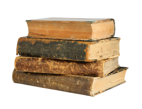 a pile of old books collection isolated on a transparent background