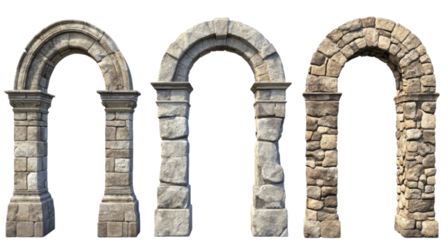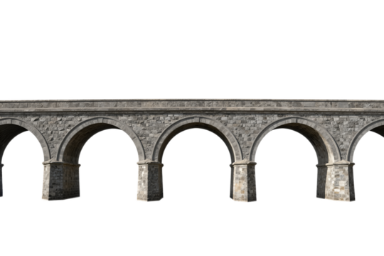 Isolated PNG cutout of a medieval bridge leading to a huge gate on a transparent background, ideal for photobashing, matte-painting, concept art