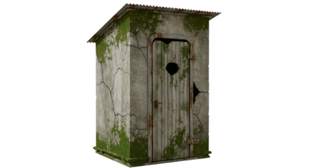 Old Abandoned Outdoor Toilet Outhouse with Wooden Door on Isolated Transparent Background