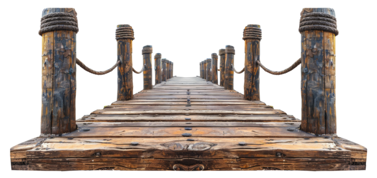 long wooden pier in the sunset, seaside weathered dock boardwalk, cutout png