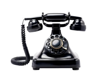 Nostalgic Connection: Vintage Telephone With Cord on a White or Clear Surface PNG Transparent Background.