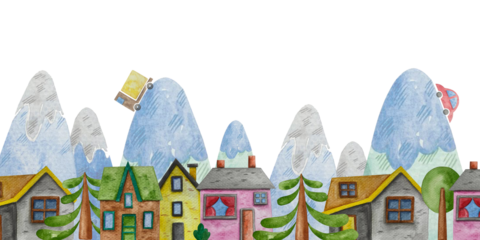 Landscape view of beautiful city by the sea, transparent background. Travel destination idea.