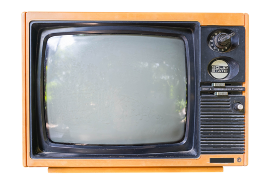 Retro CRT TV Cut Out, Vintage 70s-80s Television Isolated Image.
