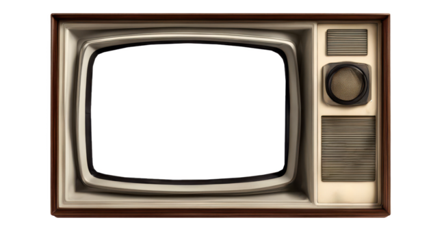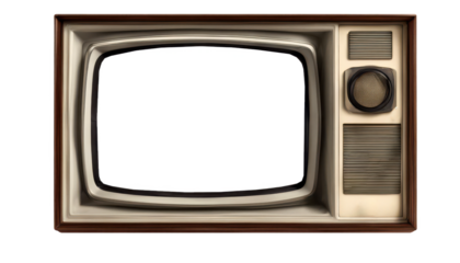 An old vintage retro tv television set with blank screen and isolated on a white background.