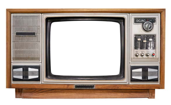 Front View of a Classic 1970s Television with Copy Space. Cut Out, Clipping Path on Transparent Background.