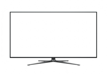 Realistic LED TV screen isolated PNG on transparent background — high-resolution modern smart television display, front view with slim black bezel, clean studio cutout for product mockups, UI previews