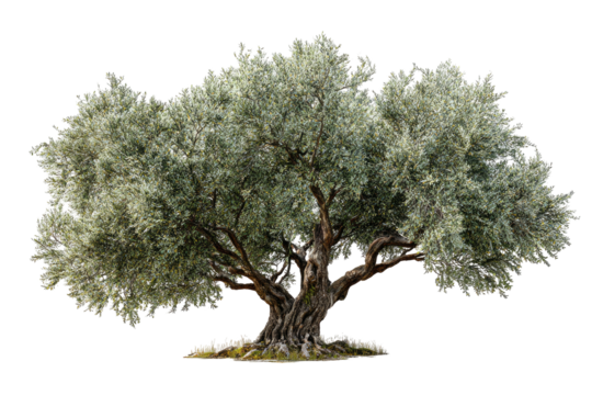An overhead view of many green olive branches filled with ripe black and green olives on white background.
