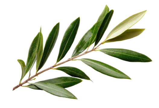 Close-up of an olive branch with vibrant green leaves and a light brown stem