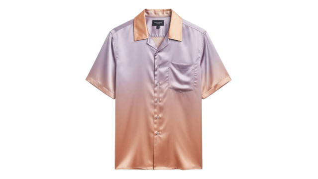 Stylish ombre silk shirt isolated on transparent background, short sleeve button-down top in gradient lavender and peach for summer fashion PNG
