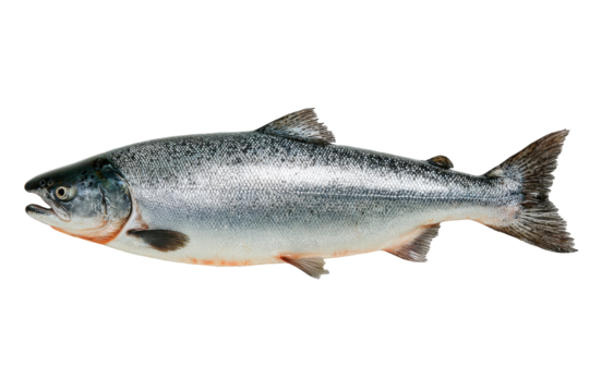 Fresh Silver Salmon Fish Black Background Seafood Ocean Food Protein Healthy Diet Cooking Recipe, isolated on a transparent background
