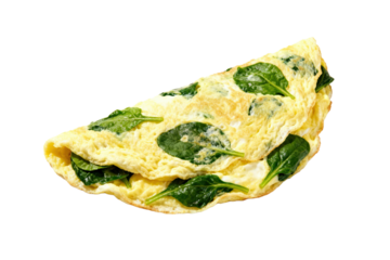 Delicious omelette with fresh greens and blue cheese, isolated on transparent background