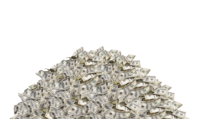 Stacks of One Hundred Dollar Bills with Red Bow On Top on a Transparent Background. Transparent PNG.