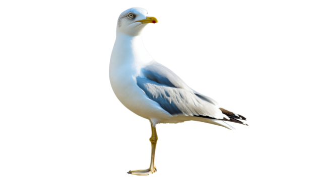 Seagull standing on one leg near the coast