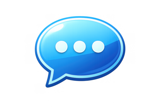 Blue glossy message speech bubble icon with three dots representing chat or ongoing conversation