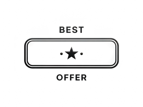 Best offer button with star rating isolated on transparent background for marketing and sales promotions online