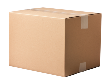Unboxing surprise action cardboard box cutout background for creative projects studio environment top-down view