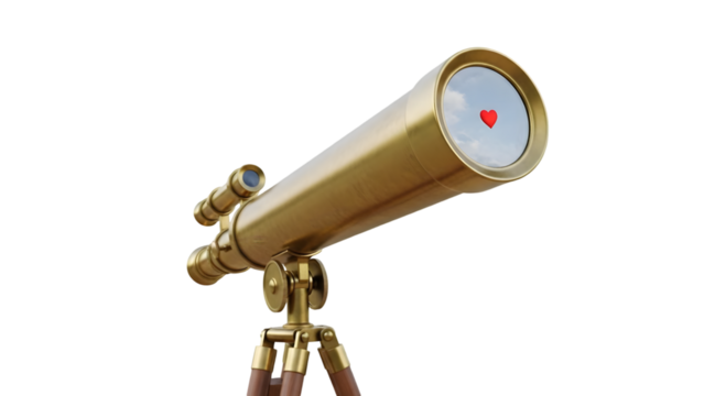 Brass telescope on a tripod isolated on transparent background