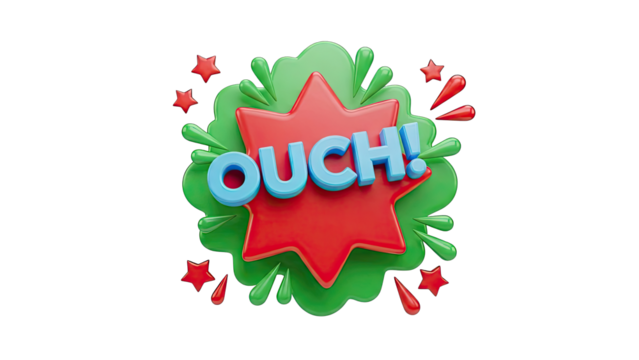 3D Ouch! Comic Book Style Explosion with Stars