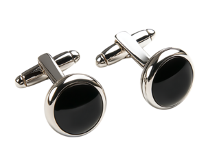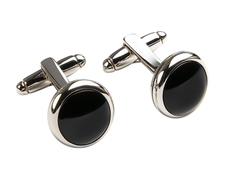 Pair of black onyx cufflinks with silver finish
