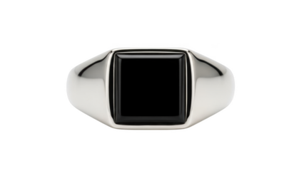 Elegant men's ring with a black onyx stone isolated on transparent background