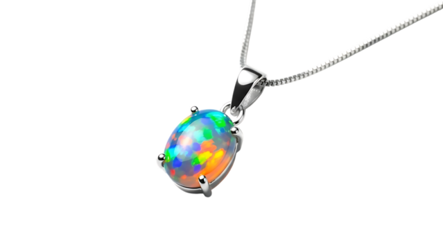 Opal gemstone isolated. A dazzling iridescent opal with vibrant blue, orange, and gold hues, reflecting light in a mesmerizing play of colors. AI generated.  .