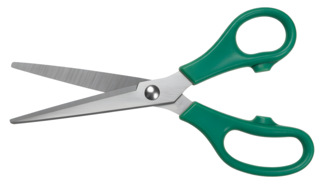 Yellow handled scissors isolated PNG, open blades for cutting paper and craft projects on transparent background