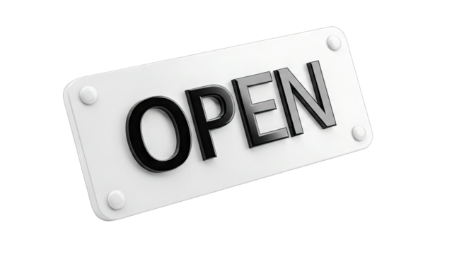 Open Sign Displayed on White Background