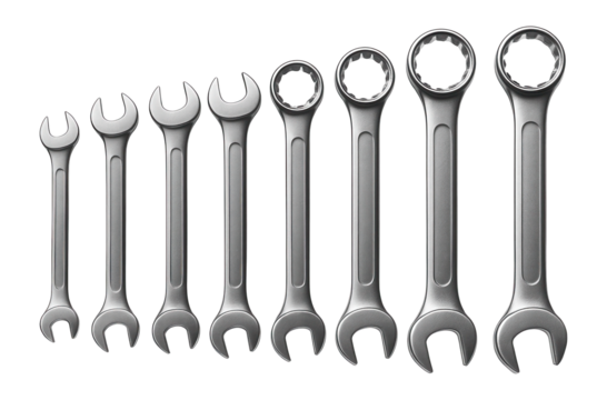 Silver combination wrench for repair and construction work isolated PNG with Transparent Background