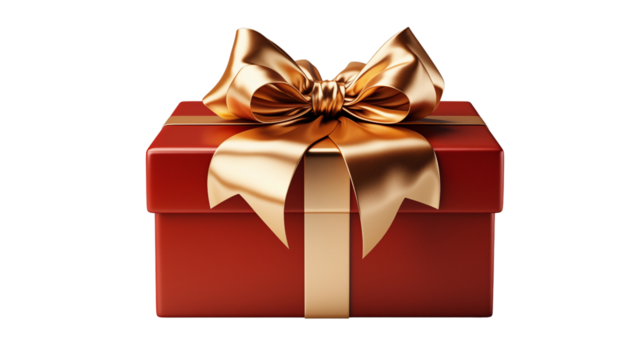 Transparent red gift box with gold bow for celebrations
