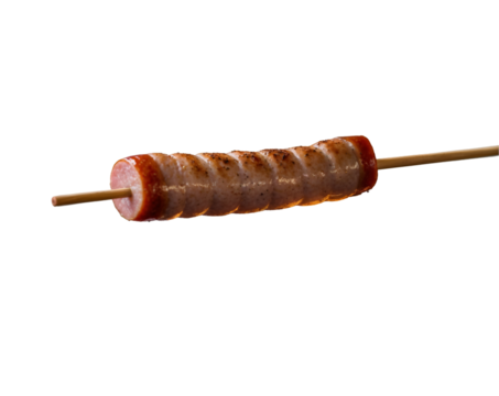Grilled Delight, A Skewer of Delicious Sausage Perfectly Roasted Over an Open Flame Showcasing Culinary Artistry and Appetizing Food Photography