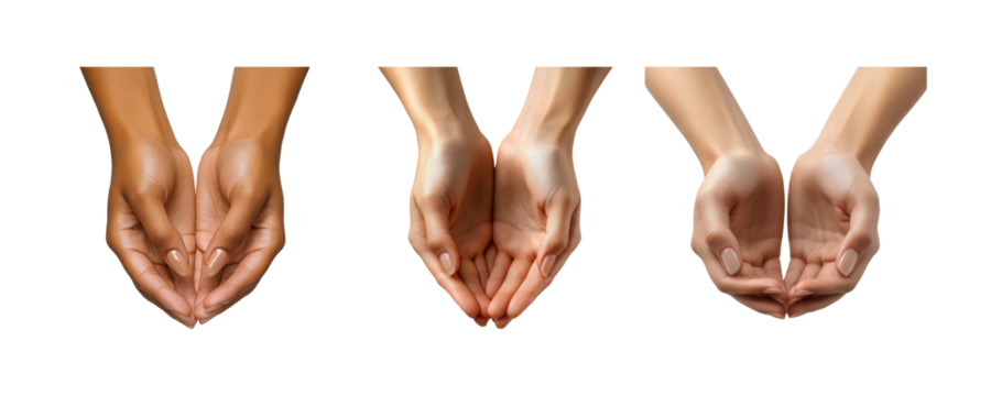 Hands in Various Skin Tones on Transparent Background