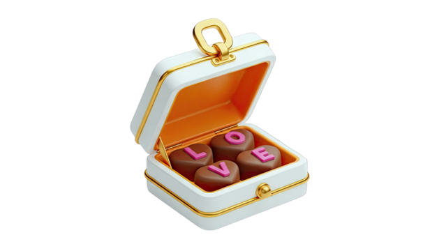 Heart-shaped chocolates spelling 'LOVE' in an open decorative box