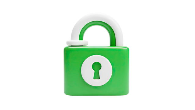 A glowing 3D padlock icon with a shiny metallic finish, representing security and trust, shown on white --ar 16:9 --v 7.0 --s 750