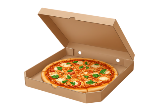 Empty cardboard pizza box isolated on transparent background