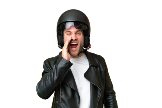 Caucasian businessman adjusting suit jacket on transparent background