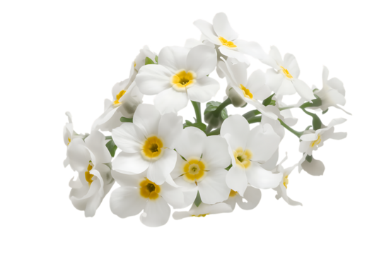 Cluster of Delicate White Flowers with Yellow Centers on Isolated White Background Floral Beauty