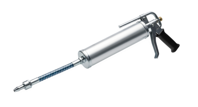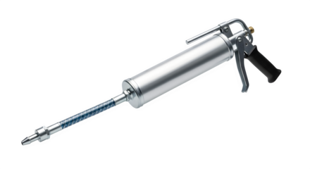 Grease gun isolated on transparent background, a tool used to apply lubricant to machinery and equipment, ensuring smooth operation and preventing wear and tear