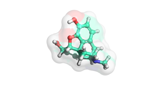 Morphine, opioid drug for management of chronic, moderate to severe pain, 3D molecule 4K