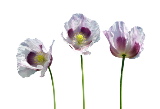 Blooming poppy ( Papaver Somniferum ) isolated on transparent background, PNG.