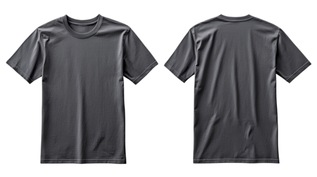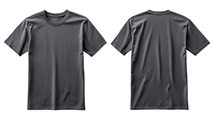 Png of Gray short-sleeve t-shirt, front and back views, perfect for casual wear or branding opportunities on transparent background.