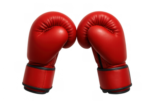 Red boxing gloves symbolizing challenge, fight and competition, ready for a match, transparent background