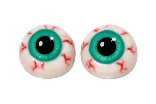 Pair of realistic green eyeballs with bloodshot veins creating a spooky, creepy halloween or medical concept