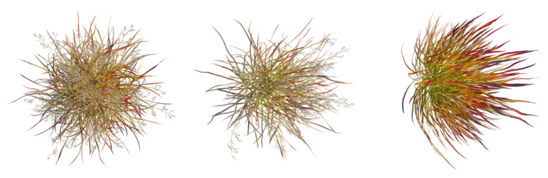 Panicum virgatum tree plan, top view, cutout, isolate, good for architecture visualization, Vibrant colorful fiber optic clusters in dynamic motion