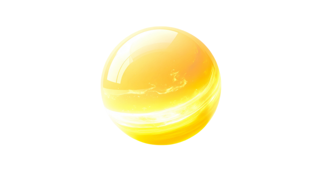 A vibrant, glowing sphere with a glossy sheen and internal illumination. Set against a stark black background