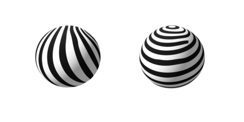 Two Spheres with Black and White Striped Patterns isolated on a transparent background ball