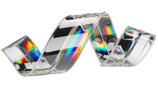 A transparent clear glass ring with intricate internal swirls creates a fascinating optical illusion against a deep black background.