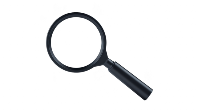 Magnifying glass black handle isolated transparent background tool search inspection object simple realistic curiosity closeup clarity focus equipment science detective lens optical accessory
