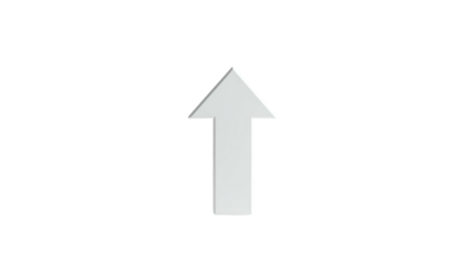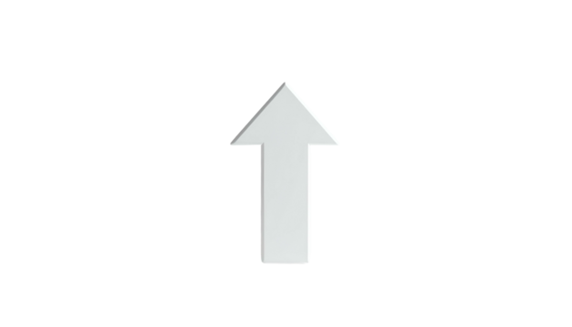 A single, upward-pointing, three-dimensional arrow, white with a slight shadow, on black