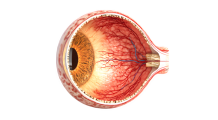 Close up of an ophthalmic phoropter for eye examinations isolated on transparent background