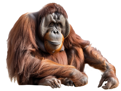orang utan ape collection (portrait, sitting, side view), animal bundle isolated on a white background as transparent PNG